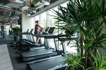 Corporativo Neuchâtel offers amenities such as an integrated cafeteria and a library in the lobby, a fitness center for the exclusive use of tenants with dressing rooms and lockers, a conference center, coworking space, bicycle parking and charging stations for electric vehicles.